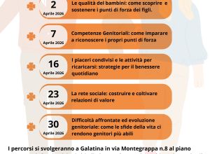 Primo appuntamento il 2 aprile 2026 dalle ore 17:00 alle ore 18:15 presso i locali dell'Ambito Territoriale Sociale di Galatina, sito in via Montegrappa 8.