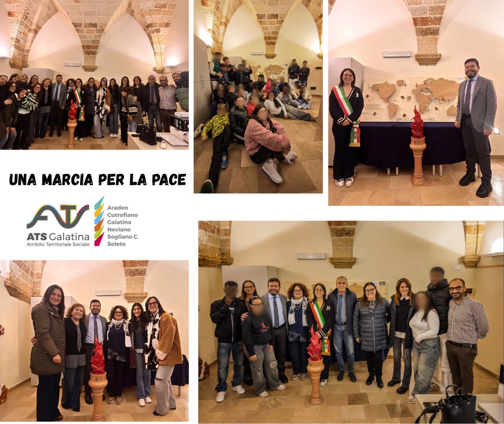 Il CROAS PUGLIA scende in campo e chiama a raccolta la Comunità Professionale per la pace e per i bambini. Da anni l’Ordine è impegnato nella promozione di attività ed azioni di pace con particolare attenzione ai diritti dei bambini e dei più vulnerabili. L’Ordine ha inteso realizzare una marcia per la pace denominata “Una luce contro la guerra”. Un cammino simbolico che attraversa la Puglia da nord a sud, portando una torcia come segno di pace, speranza e fratellanza tra i popoli. Il nostro Ambito ha voluto fortemente aderire all’iniziativa e la TORCIA SIMBOLICA nel pomeriggio del 02 dicembre 2025 ha fatto tappa presso il CENTRO Socio Educativo Diurno “S. CHIARA” afferente all’ATS Galatina. Lì i ragazzi di “Polvere di Stelle” hanno espresso tutto il loro impegno nella realizzazione del loro contribuito in questo cammino di Pace.